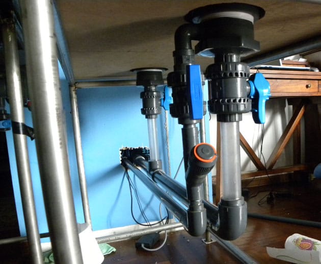 Un altro vantaggio è quello di poter variare il livello d’acqua a mio piacimento; questo mi è tornato molto utile nella prima fase dell’allestimento, infatti, potendo avere una colonna d’acqua più bassa, ho trovato meno difficoltà nell’illuminare le talee! Attualmente il livello è ancora 3 cm più basso, ma entro il 2012 porterò a regime.