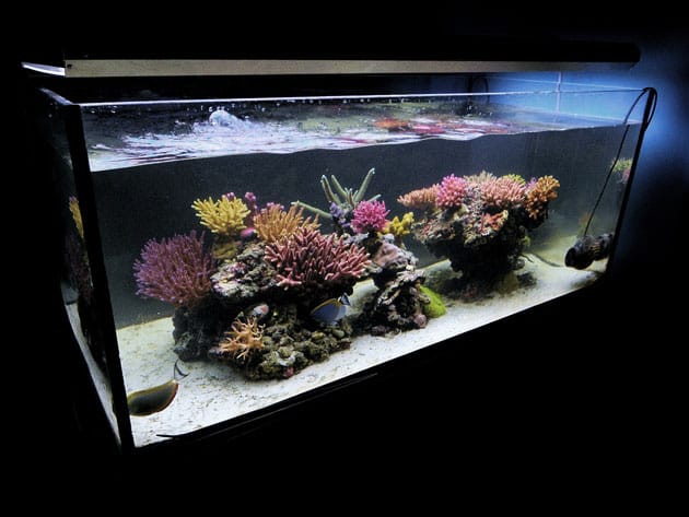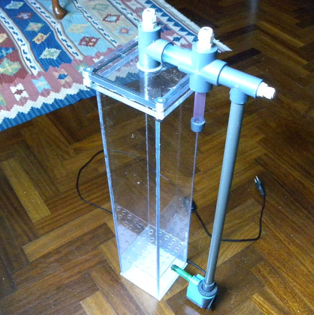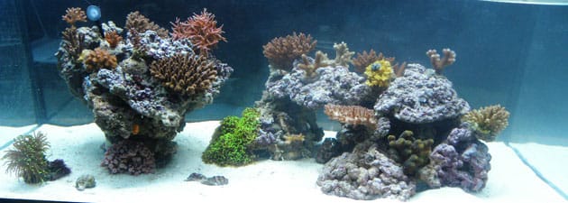 Il sistema è abbastanza semplice: 22 kg di roccia viva di varia provenienza, pochi centimetri di sabbia e un H&S 150 come skimmer; inizialmente avevo anche un reattore pf509 della deltec, ma non essendo soddisfatto dei risultati ho deciso di realizzarne uno da 8 litri con delle lastre in policarbonato.