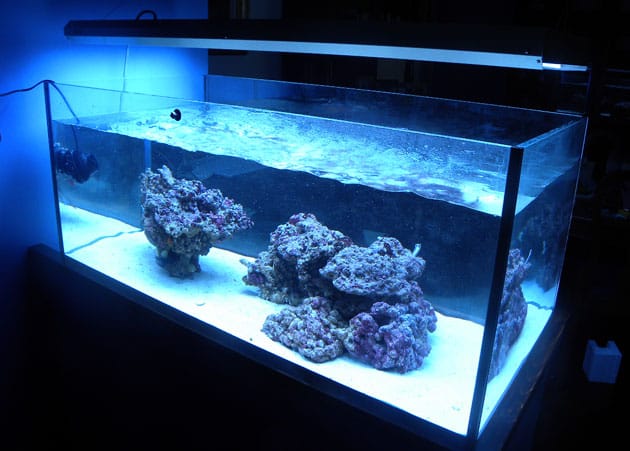Per illuminare uso una plafoniera dell’ATI, la SunPower 8x54w, con 2 BluPlus e 6 Special. Come movimento 2 pompe tunze da 6000lh sempre accese.. sostanzialmente un “berlinese ringiovanito” .