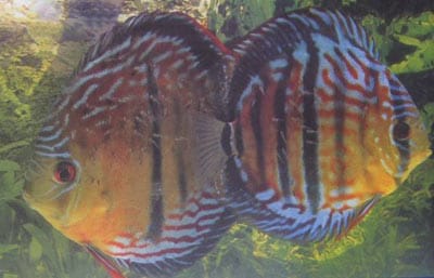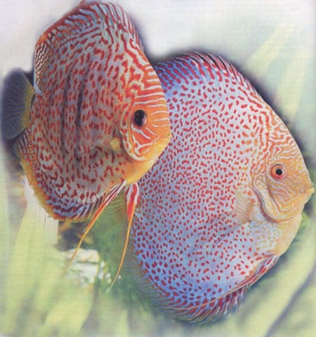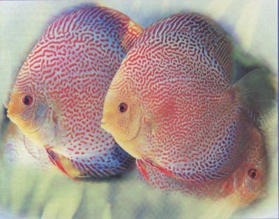 Questa temperatura non è importante solo per l’allevamento ma anche per il loro mantenimento in buone condizioni. Tenere dei Discus selvatici in acque più calde comporta problemi a lungo andare. “Coccolarli “ e sceglierli bene Per poter mantenere i vostri Discus in ottima salute,bisogna sverminarli regolarmente. In effetti se i genitori sono infestati dai parassiti, questi saranno trasmessi alla prole. Se volete riuscire nell’allevamento bisogna per diversi mesi acclimatare i genitori e liberarli da ogni forma di parassitosi.