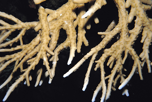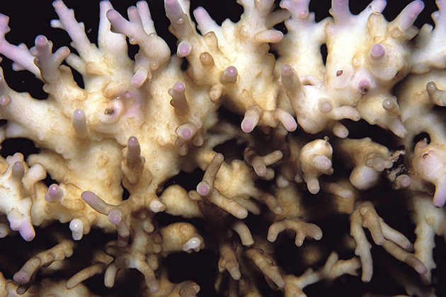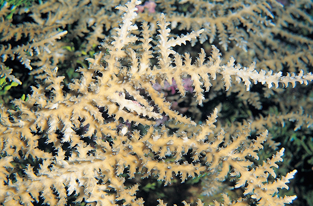 Il colore tipo del corallo è il marrone chiaro o crema con punte bianche.