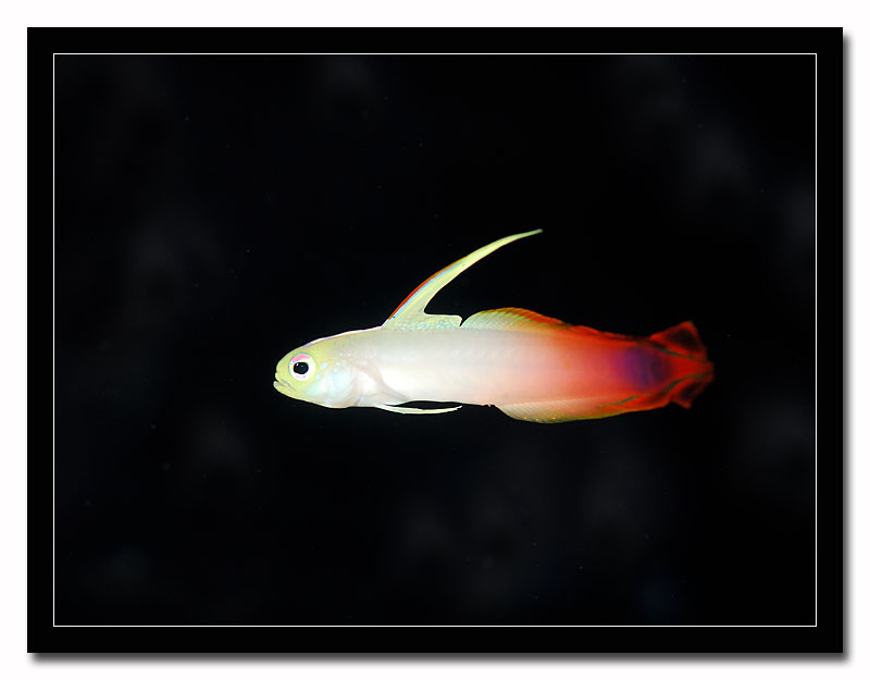 Una volta ambientato in vasca, il che avviene solitamente in brevissimo tempo il Nemateleotris decora mangia senza alcun problema gran parte dei mangimi secchi sia in scaglie che granulari presenti sul mercato come non disdegna cibo surgelato di piccola pezzatura come artemie saline.