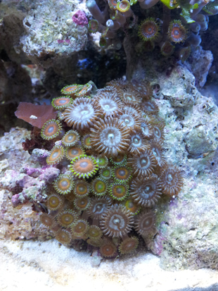 Gli ospiti presenti nella vasca sono 4 colonie di zoanthus, 2 fungia, 1 favia, 1 euphyllia, 1 spirografo, 2 discosomi,1 wundermanni, 1 debelius, un paio di lumache turbo, 2 pocillopore.