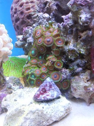 Gli ospiti presenti nella vasca sono 4 colonie di zoanthus, 2 fungia, 1 favia, 1 euphyllia, 1 spirografo, 2 discosomi,1 wundermanni, 1 debelius, un paio di lumache turbo, 2 pocillopore.