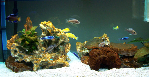 Dopo aver fatto varie esperienze di allevamento compresi i Discus, allevati quasi come dei figli, con abbondante acqua di osmosi, valori sempre eccelsi e vasca di quarantena per la cura di eventuali malattie, oggi sono passato all’acquario facile per tutti: il biototipo “MALAWI” con pesci veramente splendidi ed affascinanti anche nel comportamento (non statici come i Discus).