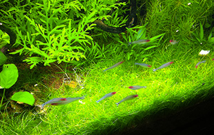 I pesci sono stati inseriti dopo circa 3 mesi e mezzo. La vasca era molto matura quando sono stati inseriti 15 Hemigrammus bleheri e 10 Otocinclus vittatus. Completano la fauna varie Neocaridina Heteropoda “Red Cherry” e delle bellissime Planorbis rosse.