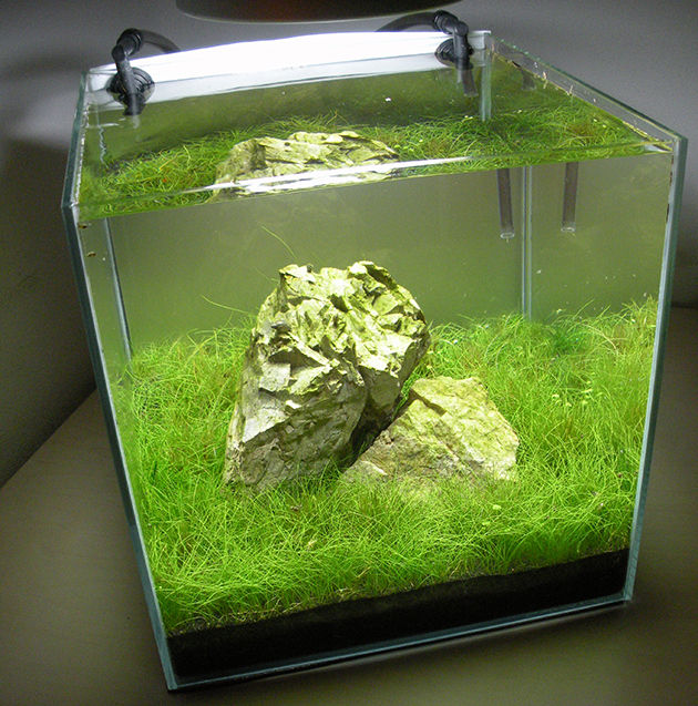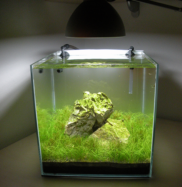 Stanco del precedente allestimento dedicato alle “epifite” , ho deciso di riallestire il cubo  30x30x30 dedicandolo questa volta alla coltivazione di Eleocharis parvula, una pianta palustre che in acquario può formare bellissimi prati compatti, con poco sforzo da parte dell’acquariofilo.  Questo vuole essere un esempio di vaschetta facile , senza troppe pretese, adatta ai neofiti che tanto desiderano avere “pratini” nei loro acquari.