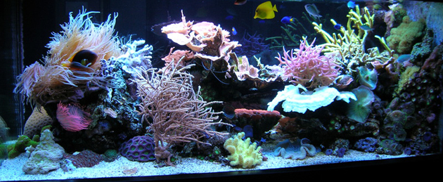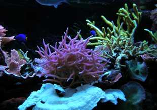 Poi piano piano i molli cedettero il posto ai coralli LPS. da circa tre anni, ho iniziato l’inserimento con scarso successo degli SPS. dopo vari tentativi e documentazioni, sono riuscito a trovare la giusta strada che tuttora seguo. La vasca è popolata da vari tipi di invertebrati: molli, LPS,SPS,gorgonie e anemoni. questo perché ogni corallo segna un pezzo della storia del mio acquario. le misure,della vasca sono 130x60x60, 400 l lordi.