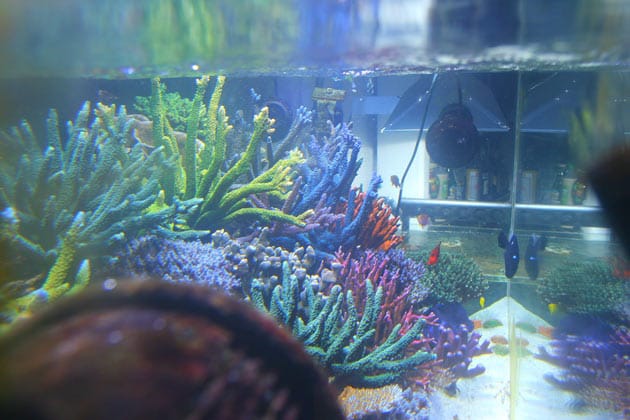 Per gestire i valori principali nell’acquario uso il sistema aquatronica che mi permette di misurare il ph, il potenziale redox e la temperatura in vasca, in estate quando fa molto caldo uso un refrigeratore della hailea modello 500a molto performante e delle ventole di raffreddamento tangenziali poste sull’acquario. In sump e stata collocata una ventola a circolazione forzata ( vortice ) quelle che si usano nei bagni chiusi, cosi che l’aria venga spinta tramite un tubo collegato fuori da casa cosi da eliminare qualsiasi odore. Questo è stato fatto in modo azzardato ma sempre con cognizione perchè da quando ho inserito le rocce e passata una settimana dall’inserimento di vari sps ( acropore, millepore, gemmifere ecc, ) e 2 acanturidi ( sohal, z. xanthurun ). Lo so che è sbagliato ma lo dovevo fare per problemi tecnici e devo dire che sono rimasto stupefatto di quanto sia andata bene la cosa nessuna perdita, valori più o meno nella norma fino a stabilizzarsi del tutto e ottima risposta del dsb, solo qualche ciano che poi e sparito. (questo successo secondo me è da imputare soprattutto alle rocce vive che era no perfettamente spurgate e cariche di batteri e microfauna che hanno popolato l’acquario in tempi brevissimi)