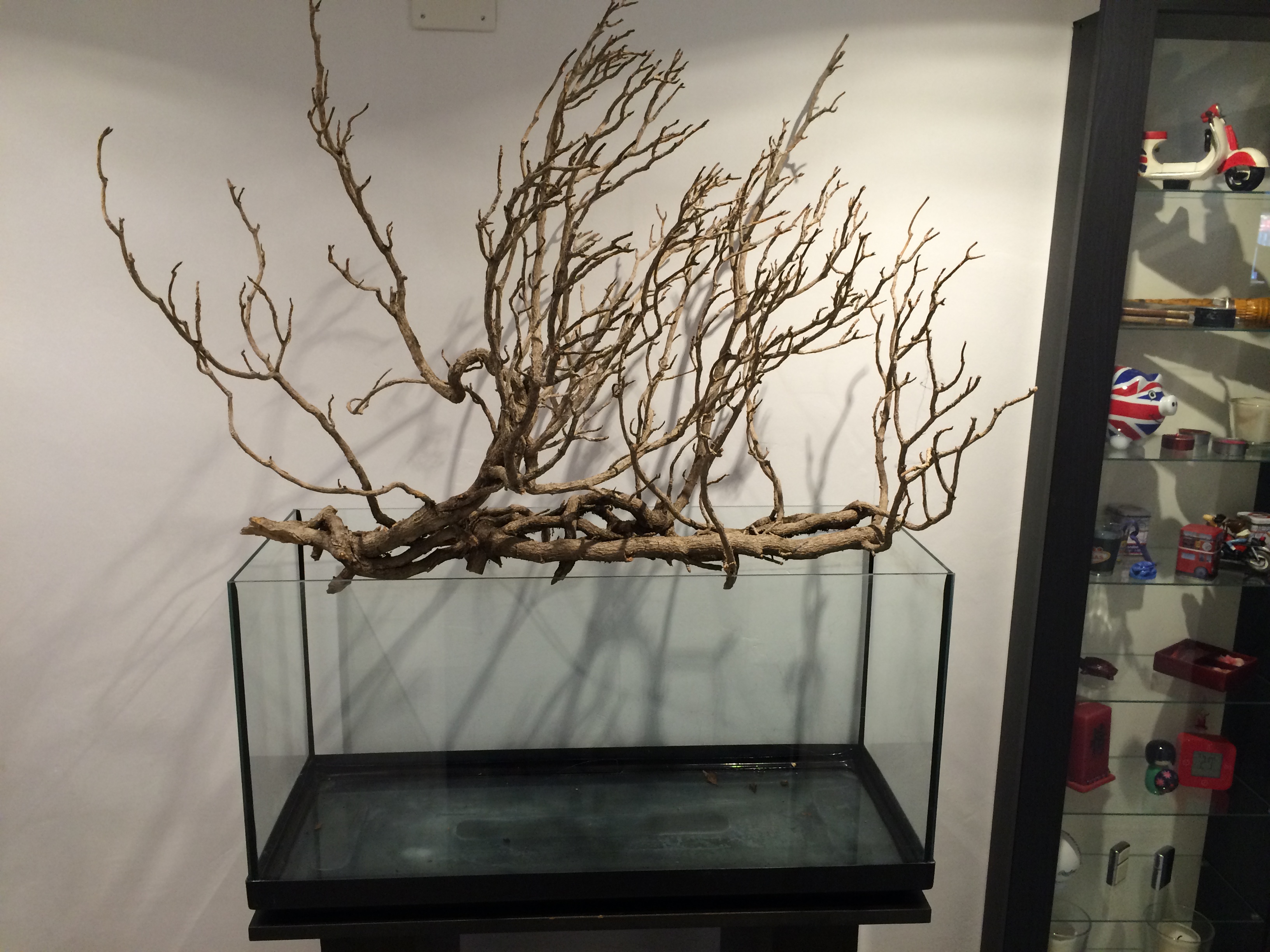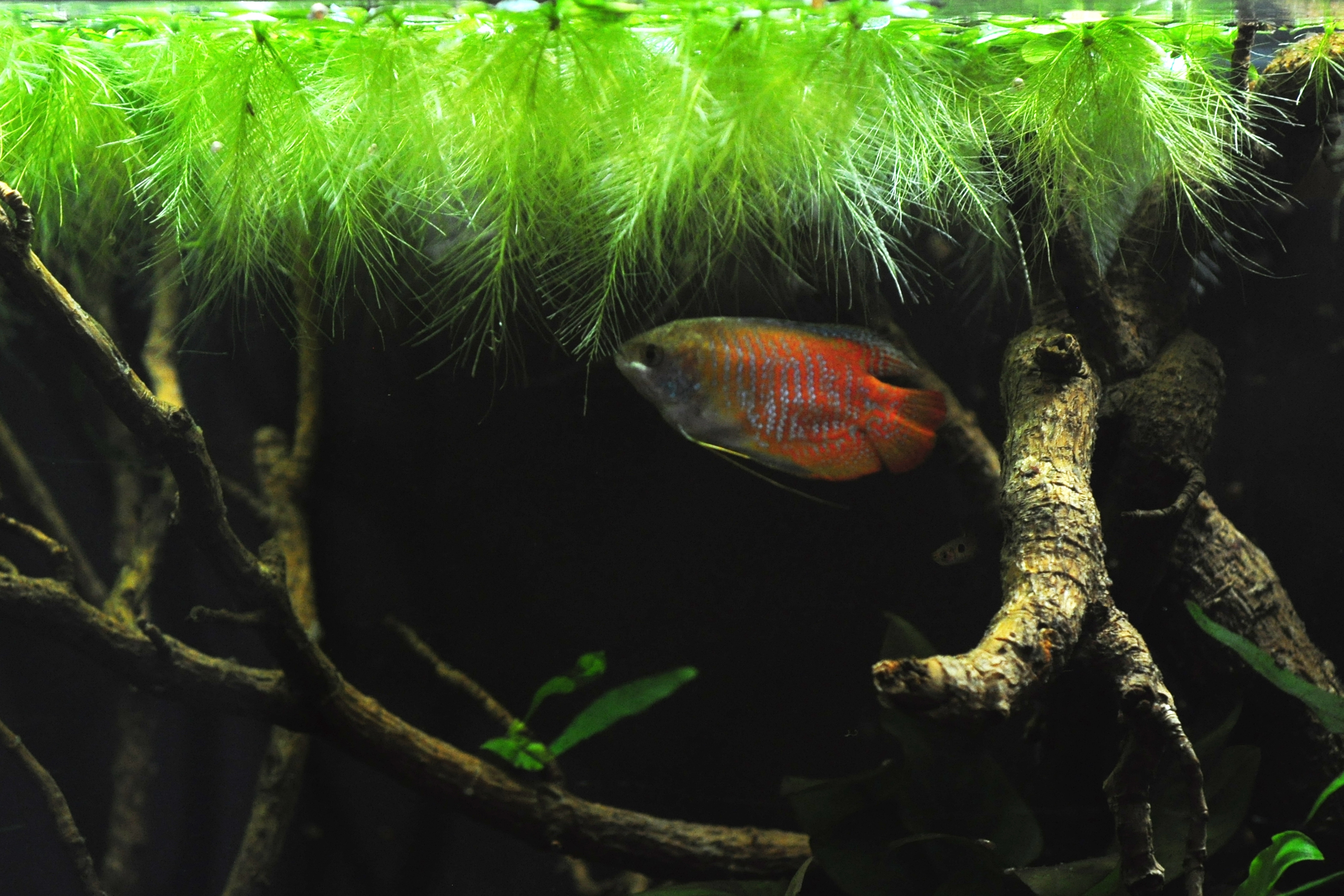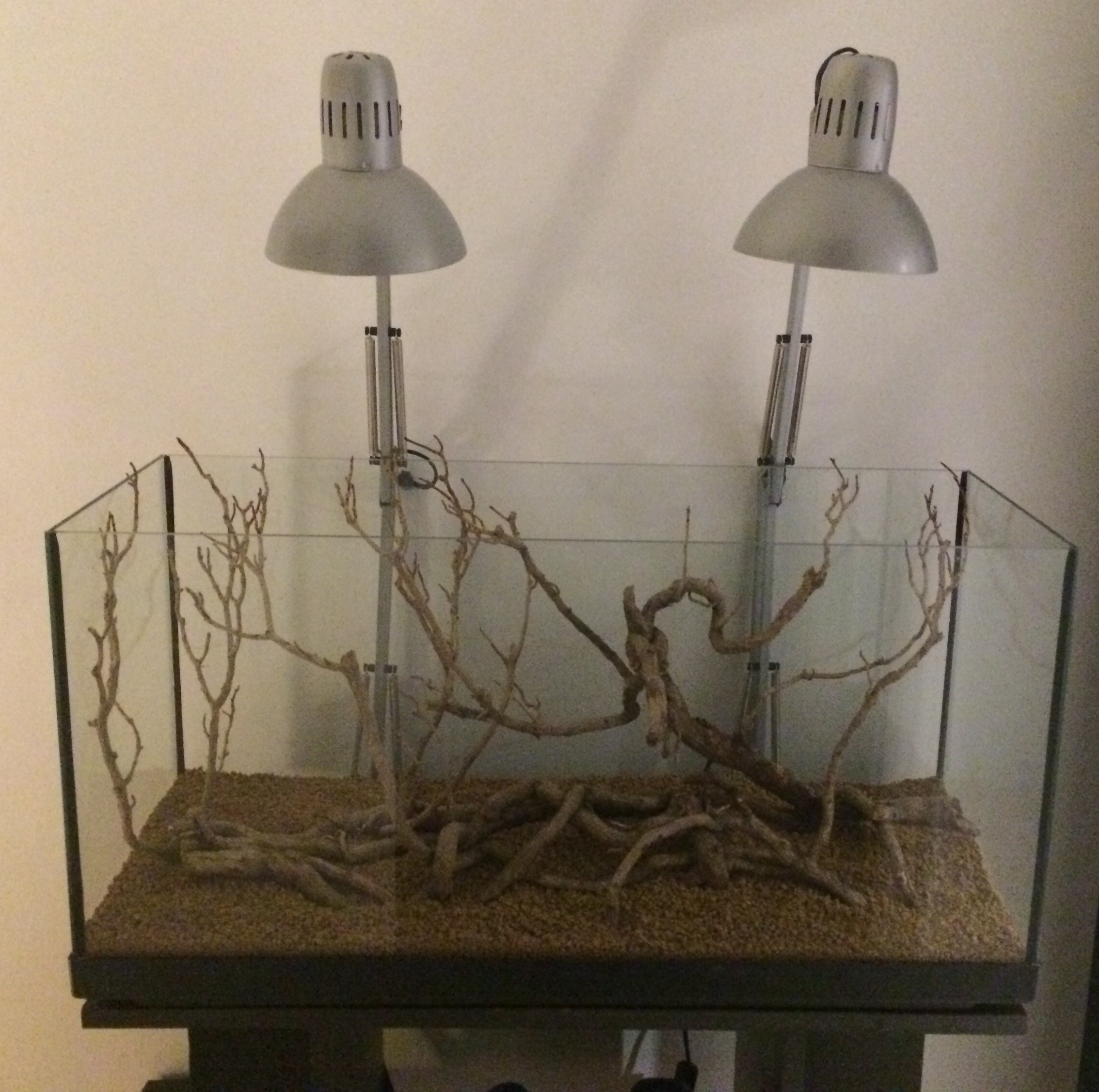 Tutto è iniziato quando a gennaio 2015 ricevo in regalo dalla mia compagna un acquario da 22 litri. Ho sempre desiderato avere un acquario e cercando informazioni su internet mi imbatto in Acquaportal, mi iscrivo al forum con mille domande e dubbi ma scopro subito con dispiacere che in un litraggio simile non posso inserire nemmeno un pesciolino. Le disponibilità economiche sono poche ma la voglia di vedere dei pesci nuotarci dentro tanta e come un bambino incosciente ci provo lo stesso. Metto 5 Boraras Maculata, i valori ci sono, i pesci sembrano stare bene ma dentro di me non mi sento soddisfatto e inizio ad informarmi sempre di più sul mondo dell’acquariologia e a cercare per loro una casa più consona. Scopro che un ragazzo regala un acquario da 100 litri lordi circa e in un giorno è già a casa. Visti i tempi e la mia compagna in dolce attesa mi dico che dovrà essere un acquario low cost, tolgo il coperchio che conteneva un neon “d’annata” da 18w e ci piazzo 2 portalampade prese da Ikea con lampade CFL da 24w ciascuna, i legni li trovo in un bosco vicino ad un lago, in quel periodo facevo le passeggiate con metro e sega al seguito.