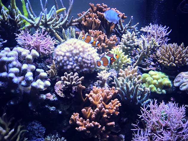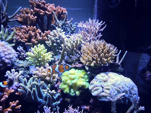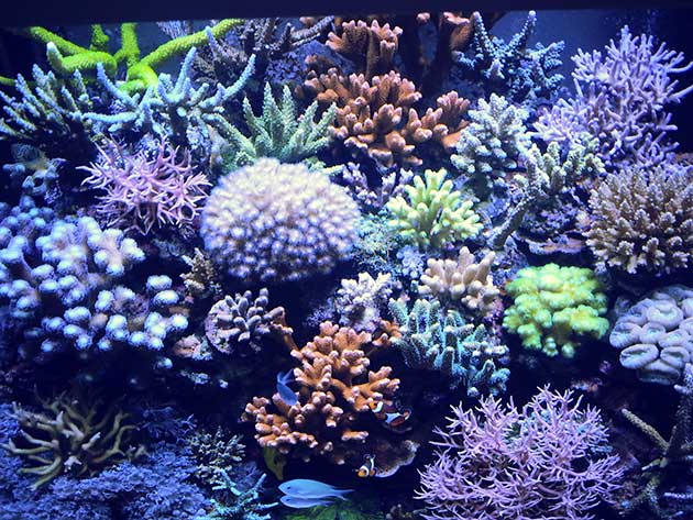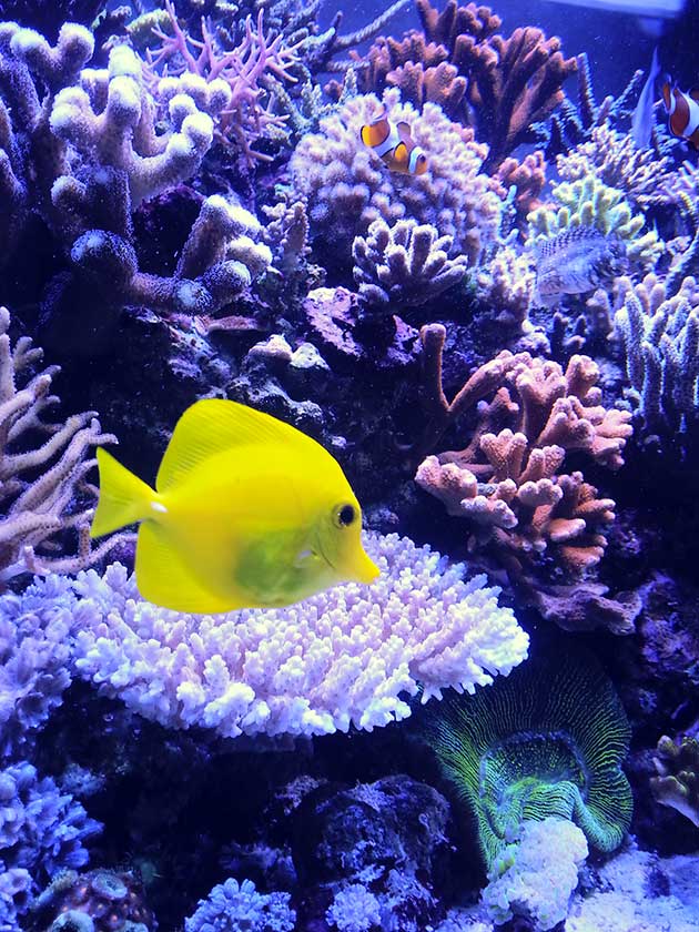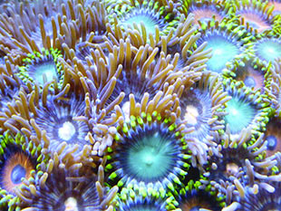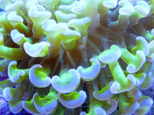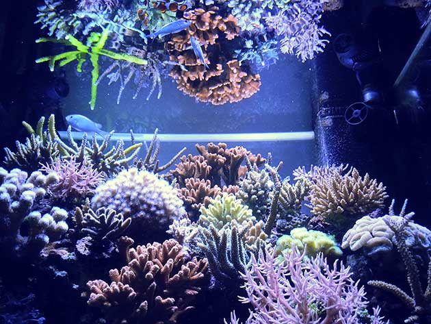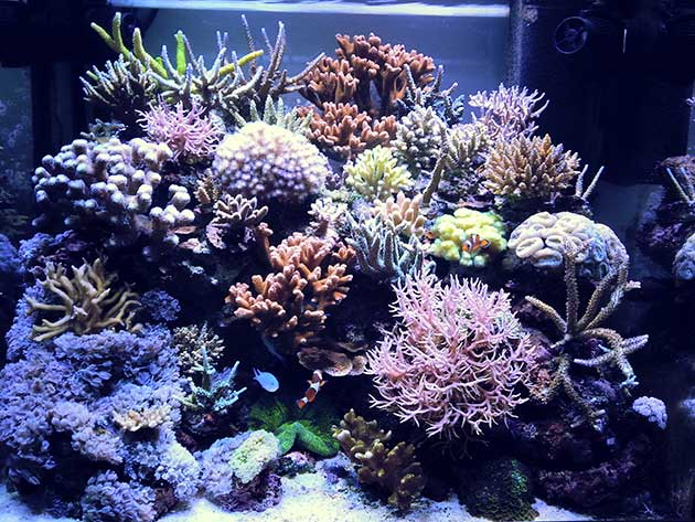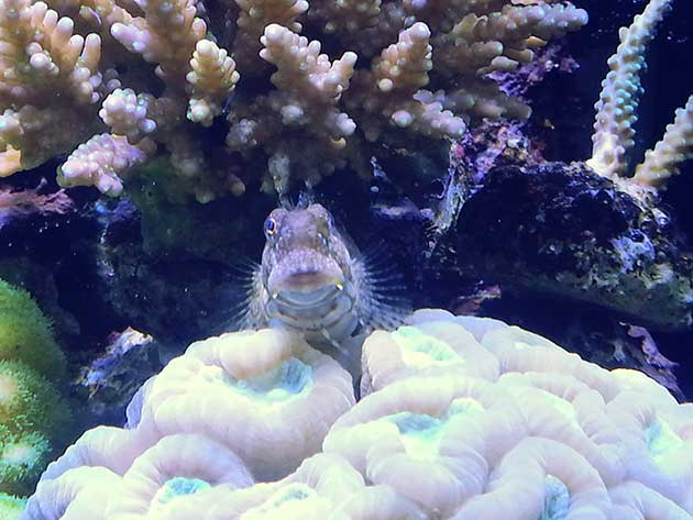 Come pesci ho una coppia inseparabile di amphiprion ocellaris che ormai mangiano dalle mani, tre Chromis viridis, uno Zebrasoma Flavescens che mi tiene pulite le rocce ed una simpatica Bavosa. Ho inoltre un gambero Lismata amboinensis e tre Wurdemanni che hanno eliminato quasi del tutto le aiptasie.