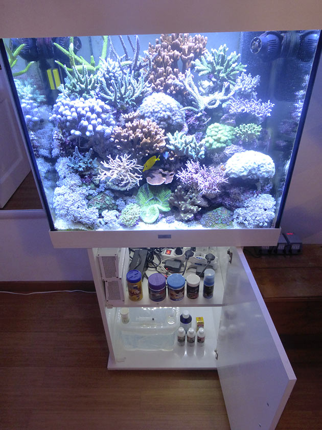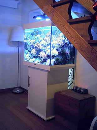 | Mi chiamo Matteo Carpani, ho 35 anni e vivo a Castiglione dei Pepoli. Dopo ben 13 anni di incubazione, l’acquariofilite si è ripresentata più forte e insistente che mai. Provengo dalla classica esperienza di vasca chiusa, filtro biologico, neon t8 e coralli molli. Evidentemente questo si riflette nella mia nuova vasca “sbagliata”, acquistata di fretta e senza prima essermi informato nella giusta maniera. VASCA: Juwel Lido 200. Misure 70-50-60h,litri 200, in funzione da gennaio 2014. Inizialmente partita chiusa e successivamente aperta per ovvi motivi.