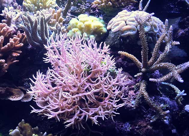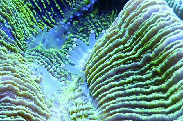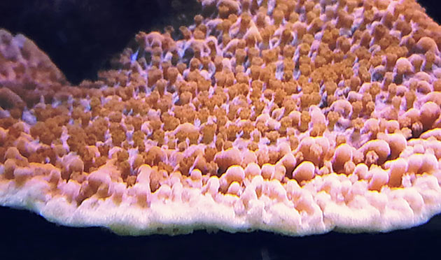 Allevo principalmente SPS, la maggior parte di questi talee cresciute in vasca tra le quali:seriatopora milka, seriatopora hystrix, millepora, pocillopora damicornis, montipora rossa e vari tipi di acropore. Tra gli LPS troviamo:euphyllia ancora, caulastrea furcata, trachypyllia verde. Per quanto riguarda la manutenzione, ho cercato di renderla più semplice possibile, vista la distanza casa-lavoro ed il poco tempo disponibile. Ogni giorno pulisco il bicchiere dello schiumatoio ed i tre vetri principali. Ogni 15 giorni pulisco le pompe e rabbocco l’acqua di osmosi. Mensilmente pulisco integralmente lo schiumatoio e rabbocco le taniche del balling. Avendo deciso di seguire alla lettera il metodo Triton, non effettuo cambi d’acqua da ormai un paio di mesi.