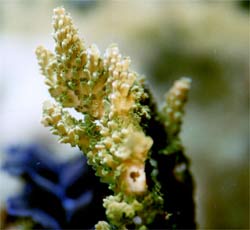 · 1 Acropora sp. (muricata?) colore verde/rosa con apici chiari (rametto riprodotto)