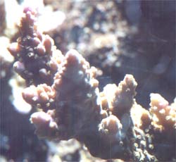 · 1 Acropora sp. (muricata?) colore verde/rosa con apici chiari (rametto riprodotto)