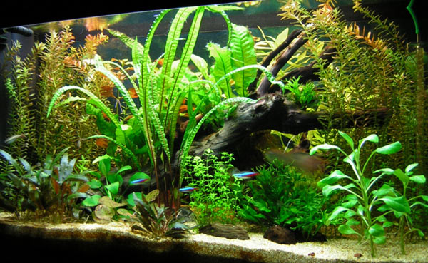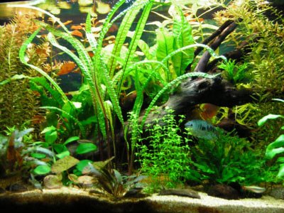 Nymphaea  | Folta vegetazione nel lato sinistro dell’acquario. |