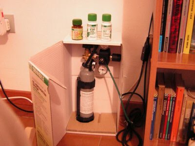 Dopo un anno circa dall’allestimento, ho installato un impianto di co2 con bombola ricaricabile da 300 l della Dennerle, somministrando circa 23 bolle al minuto .  | Impianto di co2 con bombola ricaricabile Dennerle e i prodotti per fertilizzare le piante, sempre Dennerle. |