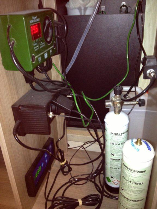 Nella tecnica trova spazio anche un impianto di co2 con bombola “usa e getta” da 500 gr. gestita da piaccametro della Dennerle con elettrovalvola dove somministro circa 50 bolle al minuto.