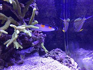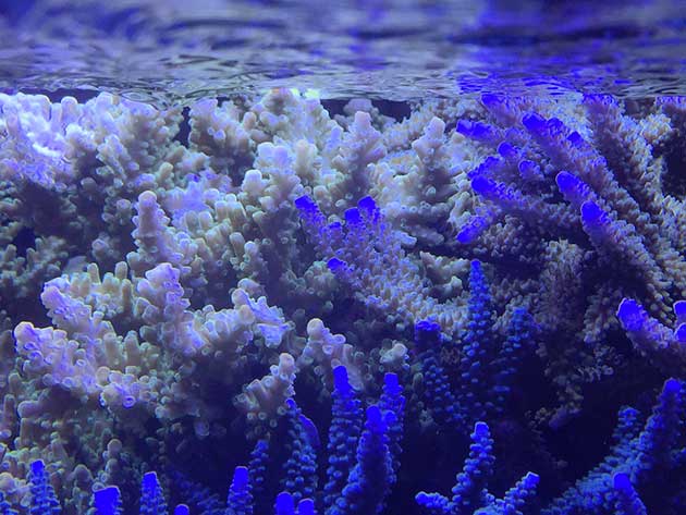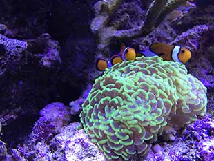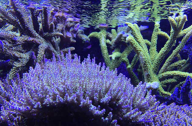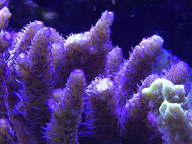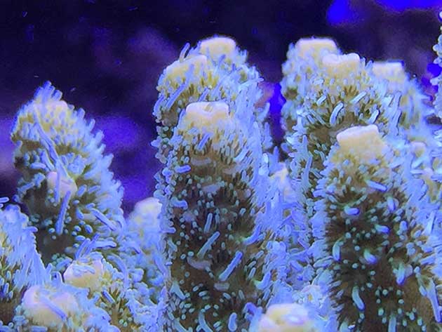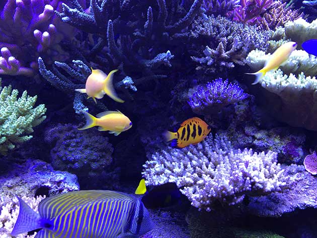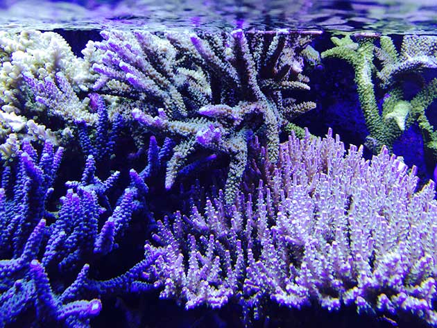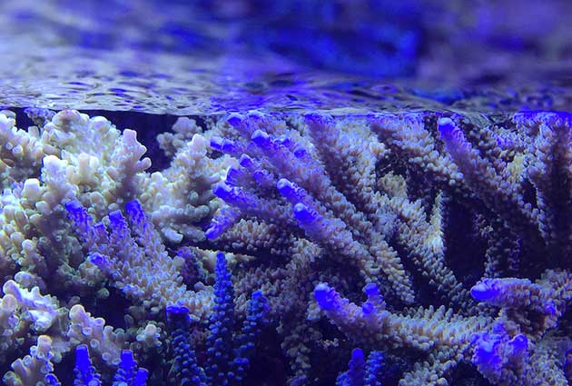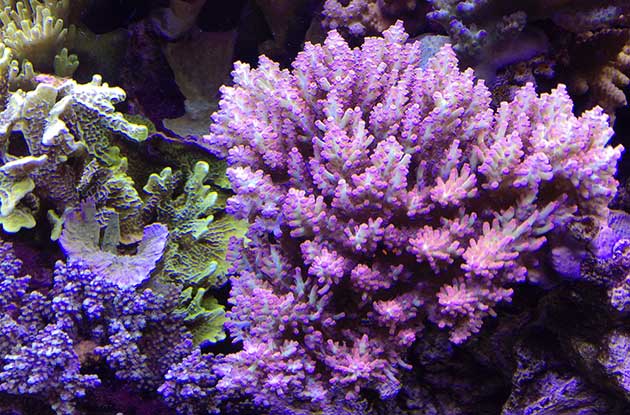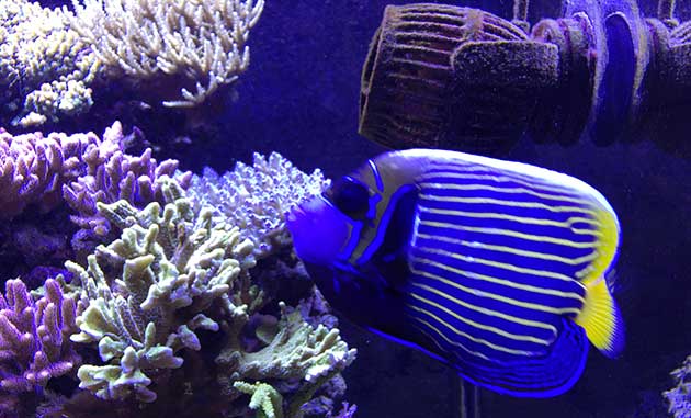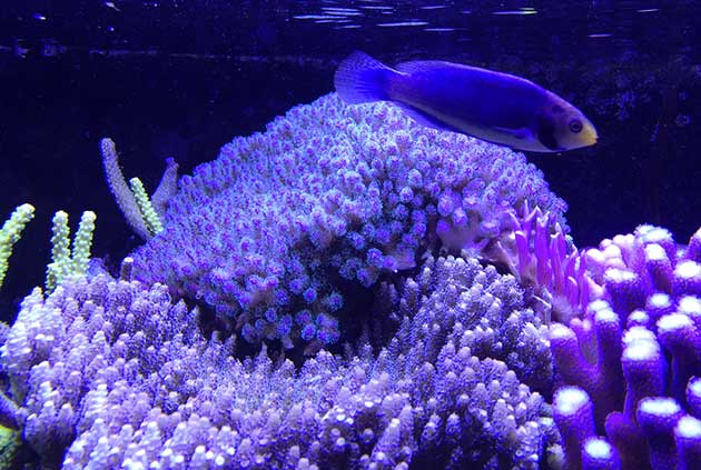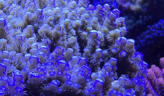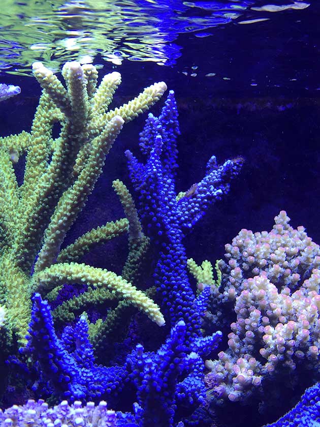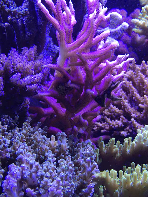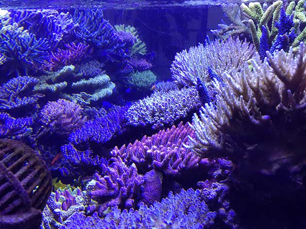 Nella vasca, in primis pretendo la salute degli animali e solo dopo la colorazione degli stessi quindi ho tutti animali non smagriti. Effettuo un cambio d’acqua di 60 litri ogni due/tre settimane, integro oligoelementi e uso svariati tipi di cibo sia per i pesci che per i coralli anche se per questi ultimi in maniera molto sporadica visto l’elevato numero di pesci. In sump ho collocato il carbone (nella classica calza) che sostituisco ogni 30 giorni circa e la zeolite posta nel suo reattore sostituita ogni 40 giorni circa. Modifico il flusso d’acqua nel reattore della zeolite a seconda di come reagiscono gli animali in vasca, utilizzo ozono con cadenza ogni 20 minuti ad ora ma non è una cosa fissa dato che a seconda delle condizioni della vasca e di come reagisce in particolare con la massa batterica alla quale potrebbe creare scompensi.