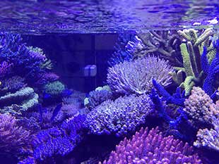 Nella vasca, in primis pretendo la salute degli animali e solo dopo la colorazione degli stessi quindi ho tutti animali non smagriti. Effettuo un cambio d’acqua di 60 litri ogni due/tre settimane, integro oligoelementi e uso svariati tipi di cibo sia per i pesci che per i coralli anche se per questi ultimi in maniera molto sporadica visto l’elevato numero di pesci. In sump ho collocato il carbone (nella classica calza) che sostituisco ogni 30 giorni circa e la zeolite posta nel suo reattore sostituita ogni 40 giorni circa. Modifico il flusso d’acqua nel reattore della zeolite a seconda di come reagiscono gli animali in vasca, utilizzo ozono con cadenza ogni 20 minuti ad ora ma non è una cosa fissa dato che a seconda delle condizioni della vasca e di come reagisce in particolare con la massa batterica alla quale potrebbe creare scompensi.