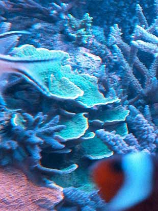 L’illuminazione è composta da 3 hqi da 250 watt, alle quali ho aggiunto 6 neon T5 da 39 watt: (2 purple e 4 attinici), anche per esaltare la pigmentazione fluorescente di alcuni ospiti.