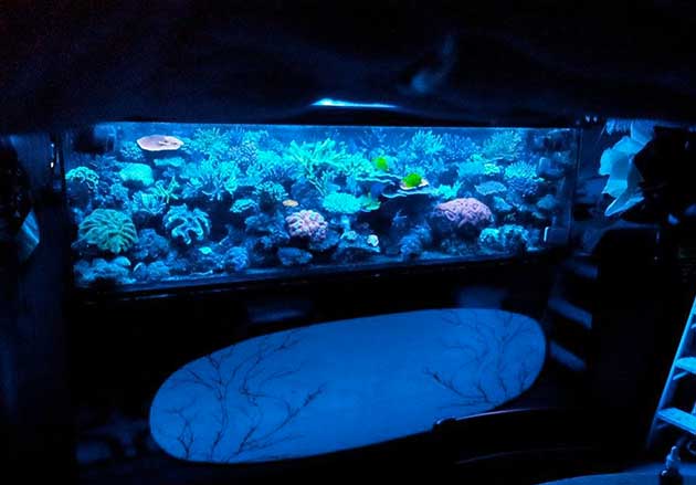 La vasca misura 200x60x60 più la sump, in tutto sono circa 1100 litri di “mare”.
