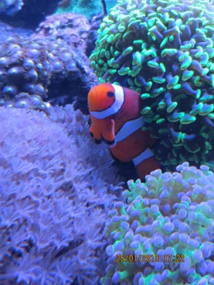 Sono sempre stata  fortunata poichè non ho  mai avuto grossi problemi. All’arrivo della nuova vasca ho inserito l’acqua e le rocce mature del mio precedente acquario con l’aggiunta di rocce fresche e pullulanti di vita.dopo circa 4 mesi …i cianobatteri!!! Provato di tutto, ma era solo dovuto alla stabilizzazione della vasca, anche i nitrati mi hanno fatto un po’ faticare per abbassarsi, ma dopo aver usato vari accorgimenti presso chè inutili, si sono abbassati da se’. Oggi è tutto ok tranne il problema delle diatomee che si fanno con facilità ma sono giunta alla conclusione che è un problema dovuto alla luce dei led. Visto che le radion funzionano alla grande, preferisco lavare la sabbia una volta di più ma non rinuncio al led che trovo ottimo specie se di ecotech Radion si parla. Seguo la mia vasca con molta cura dei suoi abitanti ed è sempre la grande attenzione  che le presto ad avvisarmi se qualcosa non va. Controllo i valori dell’acqua ogni settimana  ma solo calcio, magnesio, kh e salinità. a giorni alterni integro5 cc. di bromo e fluoro , ioduro, boro ,ferro e manganese  e elementi in tracce. una volta al mese aminoacidi  AS VITACOR ROWA. O H&O Sicce. Alimento i coralli con Plancton di PLANCTONTECH  50 cc ogni due giorni e zooplacton  giorno si giorno no.