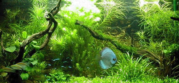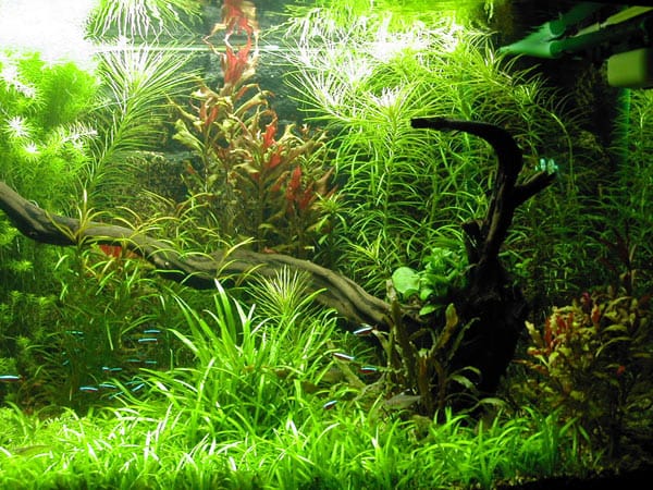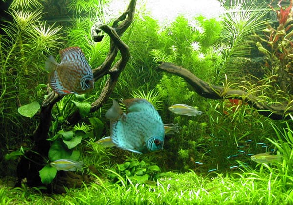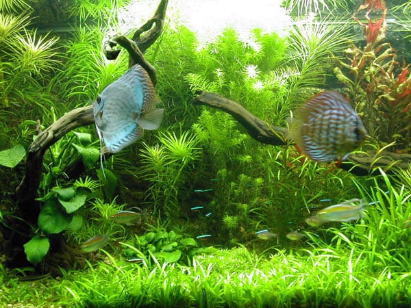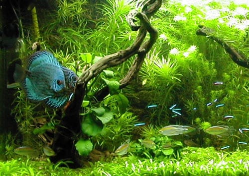 Flora Nel corso dei 5 mesi ho inserito diverse piante, tutte sempre cresciute in maniera più che rigogliosa. Alla fine, per cercare di creare un ambiente che fosse il piu confortevole possibile soprattutto per i discus, ho eliminato tutte le piante troppo “cespugliose” ed a foglia grande che non offrendosi alla “penetrazione” dei pesci, in pratica, sottraevano unicamente spazio ai pesci. L’allestimento attuale è pertanto il seguente: