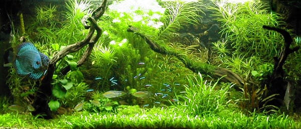 Anidride carbonica L’impianto di co2 è affidato ad un reattore della ferplast ovvero il professional. La bombola è una usa e getta da 500g. Il riduttore di pressione è tarato per erogare 30 bolle al minuto ma il tutto è collegato ad un’elettrovalvola e quindi al phmetro milwaukee sms 122. Fauna Essendo partito da perfetto neofita non avrei mai immaginato che avrei ospitato, dopo soli pochi mesi, ben 4 discus per cui questi ultimi non sono proprio da soli…… La convivenza, comunque, è assolutamente pacifica anche se credo che forse dovrei levare qualcosa. La temperatura è 28° e con luci accese 29°. Fertilizzazione Utilizzo, con grande soddisfazione, il protocollo base seachem (Seachem Flourish, Flourish Excel, Flourish Iron, Flourish Potassium, Flourish Trace) raddoppiando però le dosi di iron e qualche volta anche quelle di potassium. Valori I valori della vasca sono: ph: 6,5-6,7; no2:0; no3:15; po4:0,5; gh:6; kh:3; cond. 600 microS/cm; Ringraziamenti Un ringraziamento particolare va sia ad acquaportal (incredibile forum) che mi ha permesso di crescere in così breve tempo, bruciando letteralmente le tappe, fino a raggiungere livelli di conoscenza sufficienti per mantenere una vasca del genere sia al mio negoziante di fiducia Rosario Tommasone sempre disponibile, paziente e super competente. Spero di poter mostrare presto la mia prossima sfida………. |