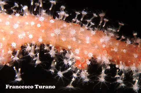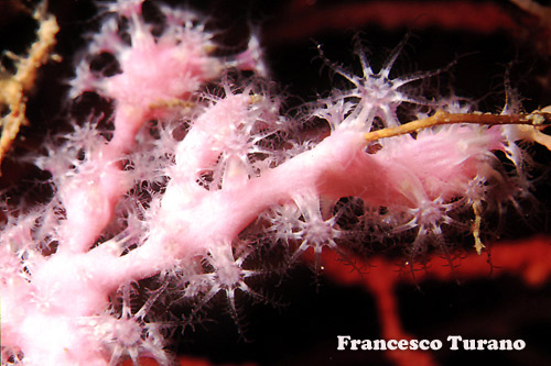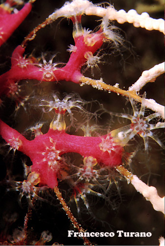 Parerythropodium coralloides, di color rosso cardinale con polipi bianchi dal colletto trasparente bordato di giallo, è un rappresentante della famiglia che invece non si contenta di gonfiarsi d’acqua per sostenersi e utilizza come scheletro quello di gorgonie morte in parte, colonie danneggiate preferibilmente della specie Eunicella cavolinii e singularis o di Paramuricea clavata. Anche questèultima specie ha colori differenti, con bellissime varianti rosa o bianche, ma il colore più frequente è il rosso vinaccio. Parte del testo di questo articolo è ricavato dal volume ‘Enciclopedia degli Invertebrati marini’ – Arbitrio Editore, di cui sono autore insieme a Francesco Costa e sul quale sono mie tutte le fotografie subacquee e parte del testo (ci sono alcune specie che non possono essere osservate in laboratorio e per le quali è possibile lo studio solo direttamente in natura). |