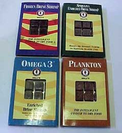 Cibi liofilizzati L’acqua infatti viene eliminata completamente, impedendo ai germi, patogeni e non, di riprodursi e contaminare i cibi. Il cibo liofilizzato per i pesci è formato da piccoli organismi che una volta di nuovo a contatto con l’acqua, riacquistano la quasi totalità della forma e del sapore originario. Generalmente sono costituiti da piccoli animali ( artemie, tubifex, krill ,chironomus, gamberetti, ed altro) e sono un ottima fonte di alimentazione da alternare agli altri cibi. La liofilizzazione lascia inalterati, oltre al contenuto proteico, anche caratteristiche nutritive più delicate, come le vitamine e i sali minerali e restituisce immutato il sapore e gli aromi contenuti negli alimenti. Questo tipo di cibo è ottimo quando si deve somministrare a pesci debilitati vitamine liquide o succo d’aglio in quanto ha notevoli capacità di assorbimento essendo privo d’acqua. Tra i cibi liofilizzati merita una particolare menzione il Cyclop-eeze®, che è un insieme di microscopici crostacei caratterizzati da un’ intensa colorazione “rosso arancio”, che si dice coltivati in un purissimo lago artico. Contengono una elevata concentrazione del pigmento Astaxanthene unitamente ad alti livelli di acidi grassi insaturi (HUFA), appartenenti alla famiglia degli “omega-3”. Il Cyclop-eeze® è dunque un ottimo alimento, da non somministrare però con eccessiva frequenza in quanto proprio per le sue caratteristiche altamente nutritive, si può rivelare pesante per il fegato.