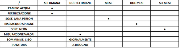 Valori dell’acqua: Acque di rubinetto con KH~10 e GH~15 vanno bene.