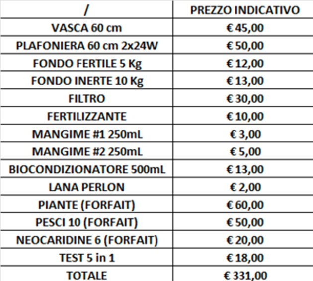 Ho scelto prodotti presenti nei negozi on-line di acquari, preferendo prodotti rinomati e di qualità: