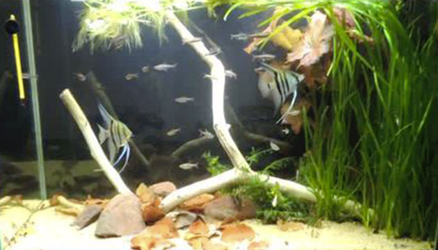 La vasca che ospita i pesci in questione è un Askoll Cyano 80 di 120 litri circa, con fondo in sabbia chiara di granulometria fine. La vasca è in attività da circa un anno con valori stabili di Ph:6,8 Kh:2 Gh:3 PO4:0 e NO3:0.