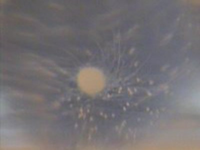 Da qualche parte ho letto che nei Brachydanio i partner tendono ad essere fedeli accoppiandosi sempre e solo tra loro, ma dalle riproduzioni da me compiute ho potuto constatare come ciò non corrisponda al vero avendo ottenuto accoppiamenti anche scambiando tra loro i partner. Una volta, allestite quattro vaschette contemporaneamente, ho verificato che solo una coppia non aveva prodotto alcun frutto il giorno dopo; per quanto ciò possa essere normale, non mi sono dato per vinto (mi dispiaceva lasciare la femmina così gonfia): ho sostituito il maschio (pensando che fosse lui restio in quanto ben poco vispo), introducendo al suo posto uno degli altri tre che si erano appena accoppiati (scegliendo quello apparentemente più in forze), ebbene, la mattina seguente: operazione riuscita ed accoppiamento avvenuto. E’ possibile che talvolta non si ottenga l’accoppiamento degli individui, probabilmente ciò avviene per motivi quali: la scarsa salute dei pesci, è bene infatti scegliere individui in ottima forma (leggasi quelli che nuotano velocemente e di continuo, che presentino colorazione vivace e non svanita, non presentino abrasioni od altre irregolarità sulla pelle, ecc.); le uova prodotte dalla femmina sono di vecchia produzione ed il maschio rifiuta l’accoppiamento; di minor importanza ma pur sempre un motivo può anche essere il fattore di disturbo esterno, è sempre bene quindi posizionare le vaschette in luogo tranquillo. Di norma io posiziono ai lati delle vaschette un panno oppure del cartone, in modo che non impediscano il passaggio della luce dall’alto (non mi riferisco a quella del neon, non li posiziono certo sotto una luce artificiale), per non far perdere ai pesci la cognizione di giorno e notte. Comunque, per assicurarmi il buon fine dell’operazione, di solito allestisco più vaschette contemporaneamente in cui inserisco altrettante coppie. Altro accorgimento che normalmente adotto per assicurarmi maggiori possibilità sul buon fine dell’operazione è l’allontanamento dei sessi: almeno per 5-7 giorni prima dell’evento mantengo separati i maschi dalle femmine trasferendoli in acquari diversi oppure posizionando un pezzo della solita retina in plastica in modo da dividere in due il volume dell’acquario. Predisposto tutto il necessario, si passa finalmente all’introduzione dei riproduttori. Inutile spendere parole sullo spostamento dei pesci da un acqua ad un’altra, la regola vale non solo quando si portano a casa i pesci dal negozio. Per raccogliere i pesci dall’acquario principale utilizzo un bicchiere in plastica (preferibile alla retina), che risulta poi utile per l’acclimatazione nella vaschetta. Solitamente inserisco una coppia per vaschetta, ma secondo alcuni (in particolare allevatori professionisti) andrebbero inseriti preferibilmente un paio di maschi con una femmina al fine garantirsi la fecondazione di un maggior numero di uova. Io una volta ho provato ad inserire 2 femmine con un solo maschio ed al termine dell’accoppiamento ho notato che entrambe le femmine si erano “svuotate”, inoltre il numero di uova non fecondate erano nella norma. Se i pesci sono in salute, appena liberati nella vaschetta cominciano subito a nuotare in quei pochi centimetri di vasca, osservandoli ritengo che giochino tra loro rincorrendosi da una parte all’altra. Vista la limitata quantità d’acqua è sconsigliato alimentare i pesci che, per un giorno di dieta, non ne risentono assolutamente. Dopo la pausa per la notte, i giochi riprendono alle prime luci dell’alba portando infine all’accoppiamento vero e proprio, difficile da identificare ad occhio nudo, nel quale la femmina rilascia le uova ed il maschio le feconda mentre scendono verso il fondo. Controllando a vari orari, ho verificato che l’accoppiamento avviene solitamente al mattino. Qui sotto, alcune fasi del veloce accoppiamento (si tratta di singoli fotogrammi ripresi con una telecamera) e, sotto la retina, le minuscole uova trasparenti appena deposte.