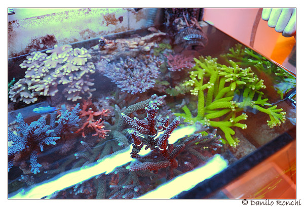 Successivamente si procederà all’estrazione dei coralli, cercando di inserirli ovunque vi sia posto, con l’accortezza di non farli toccare fra di loro, è possibile a questo punto estrarre anche ricci e lumache che dovessero essere rimaste senza acqua, ai pesci non pensateci neppure, per ora, dato che tanto sarebbe impossibile pescarli fino a che vi saranno rocce in acquario ove nascondersi.