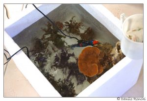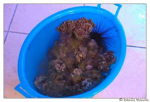 Quando si prenderanno i coralli dall’acqua che verosimilmente saranno i primi ad andarsene dalla vecchia vasca, è importante immergerli subito nei vari contenitori facendo attenzione che non si tocchino gli uni con gli altri. I pesci invece possono essere tranquillamente inseriti nelle vasche coi coralli. Le rocce vive sarebbe ottimale poterle inserire anch’esse in un recipiente con le stesse attenzioni riservate ai coralli, se si intende riutilizzarle come di solito succede in un cambio vasca di questo genere, ma potrebbe essere sufficiente tenerle “a secco” avendo però l’accortezza di bagnarle ogni tanto per mantenerle umide.