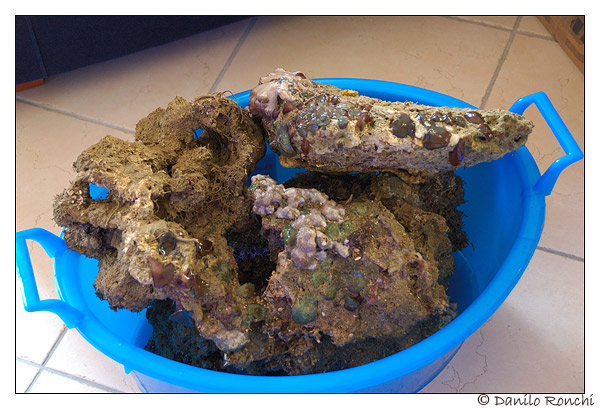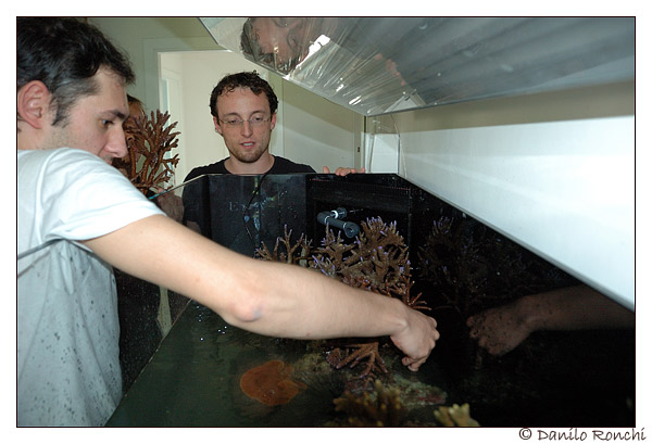 Ma il tutto è stato possibile anche grazie all’estrema organizzazione che ci ha permesso di avere tutto sottomano senza particolari intoppi. Una sola cosa mi sento fortemente di consigliarvi, e cioè se aveste coralli di dimensioni importanti, come quelli che avevo io, sarebbe buona cosa darli via prima del cambio e non portarseli dietro, perché sono quelli che soffriranno maggiormente nel cambio vasca, saranno quelli che produrranno più muco e che rischieranno di uccidere con le loro secrezioni molti altri coralli più piccoli e potrebbero addirittura indebolirsi a tal punto da morire nelle settimane seguenti il nuovo allestimento (a me è successo con una formosa enorme, purtroppo).