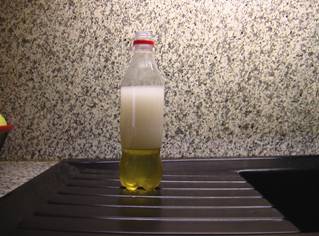 Ottenuto un composto omogeneo, lo versiamo nella bottiglia e mettiamo il tutto a raffreddare in frigo in posizione verticale.