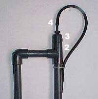 Al posto della valvola di non ritorno, per impedire il ritorno dell’ acqua, è possibile utilizzare uno sfiato collegato alla fine della mandata dell’ acqua. Per funzionare bene il tubicino deve essere abbastanza grosso (minimo 6 mm.)