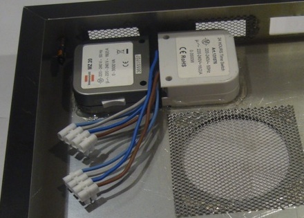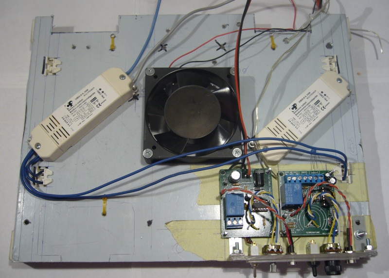 Per farla breve, da un problema all’altro, dopo un po’ di tempo, in una scatola di 35x29x7cm di altezza sono riuscito a farci stare: le lampade fluorescenti i temporizzatori, la ventola di rafreddamento, le lampade per la “luce lunare” e i controlli elettronici.