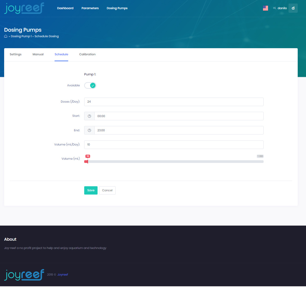 - L’interfaccia di gestione delle pompe dosometriche è via internet, più specificatamente attraverso il sito joy-reef.com, e spero in un futuro, attraverso app.