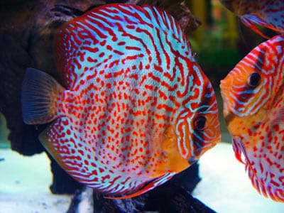 La scelta Il consiglio principale che può essere dato, oltre al portare con se un amico esperto, è quello di non acquistare i Discus il giorno in cui arrivano in negozio, sarà opportuno tornare nei giorni successivi, perché più tempo passa, meglio saranno acclimatati e si potrà notare l’eventuale insorgere di patologie. Inoltre, i Discus scelti dovrebbero essere di taglia media (Discus troppo piccoli meglio lasciarli ai più esperti), presentare una bella forma rotonda e non allungata, mostrarsi vivaci, non timidi ed apatici, i colori devono essere brillanti, un colore scuro spesso è indice di malessere, corpo e pinne devono avere un aspetto regolare, le labbra devono essere chiare e ben formate. Una grande importanza rivestono gli occhi: non devono essere spenti e scuri (indirizzano verso una diagnosi di verminosi intestinale), non devono presentare macchie bianche interne o parti mancanti (possibili difetti genetici) e devono essere proporzionati alla dimensione del corpo (occhi eccessivamente grandi sono di solito indice di carenze alimentari, nanismo e problemi nella crescita non recuperabili).