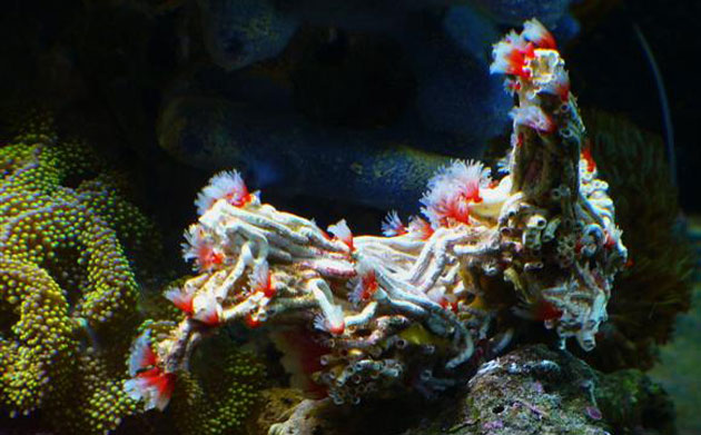 ![]() Classe: Policheti Famiglia: Serpulidi Prov.: Indonesia Quando mi proposero di acquistare questo corallo inizialmente non devo aver mostrato un grande entusiasmo. Quello che mi si proponeva davanti era un insignificante fascetto di tubicini bianchi! Ma non avevo visto tutto! Dopo qualche attimo di attesa probabilmente determinato dal disturbo arrecato da qualche gamberetto, dalle estremità di questi tubicini fecero capolino decine e decine di piccoli spirografi di un rosso sangue intenso degradante fino al rosa fiori di pesco; e fu amore a prima vista.