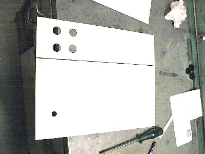 Prima di passare alle siliconature o alle eventuali piegature si devono praticare i fori di ingresso e quello dell’uscita della pompa a pelo dell’acqua, per fare un bel lavoro ci sono in commercio delle fresette a tazza che danno una ottima finitura, se non le abbiamo o non troviamo chi ce le può prestare si possono fare una serie di buchi con una punta fine e raccordarli poi con una limetta mezzotondo.