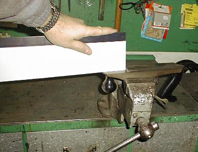 Passiamo ora alla realizzazione pratica Prendiamo la lastra e tagliamola della misura che abbiamo previsto, per rifinire i bordi di taglio è ottima la pialla, il lavoro è ancor più facile se la fissiamo in una morsa con la lama verso l’alto e passiamo la superficie (occhio alle dita!).