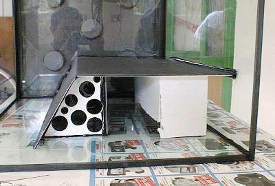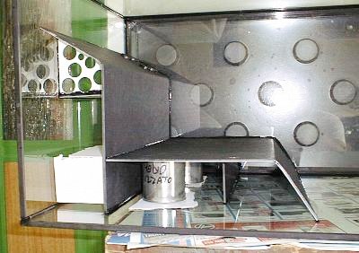 Altrettanto semplice da realizzare, ma un po’ più complicato da progettare è questo tipo di filtro Il vantaggi è che non ci servono mascherature sul vetro frontale, richiede però un maggiore volume della sezione della pompa e tanta attenzione nella preparazione fuori vasca delle separazioni interne.