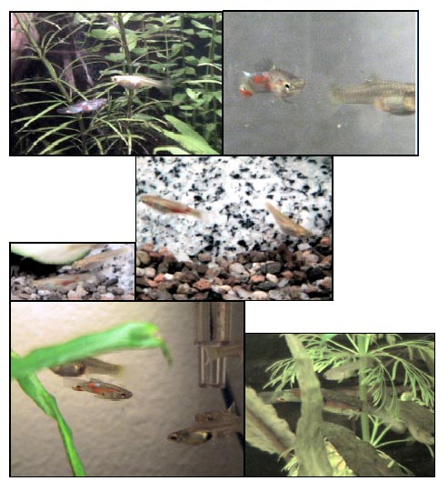 La mia passione per i pesci nasce con la pesca all’età di 6 anni, la mia fortuna è di vivere in campagna e avere un lago privato che mi ha permesso di fare molta pratica quotidianamente, sono comunque stato molto spronato dalla famiglia e dai miei fratelli. (tutti con il pollice verde). Il primo acquario era formato da 5 semplici vetri incollati fra loro, a 10 anni lo allestivo con un po’ di sabbia che rubavo dai mucchi dei cantieri, acqua di pozzo…pesci gatto, alborelle, carpe erano gli inquilini… Saltuariamente era protagonista una biscia d’acqua. Un bel giorno di natale, sotto l’albero trovai in regalo un acquario che tutt’ora(8anni) è in funzione, niente di ingombrante, la cosa giusta per iniziare. Da quel giorno all’anno scorso ha avuto ogni genere di ospiti.. ogni errore è stato commesso, ogni esperimento è stato fatto…molti pesci sono morti. Un bel giorno riesplode la passione, balza in testa l’idea di sistemare l’acquario di impegnarsi di studiare di approfondire…, si prende conoscenza degli errori fatti e di quelli fatti fare dal negoziante… Per ripartire da zero, riportai i pesci rimasti (uno Scalare, un Trichogaster) al negoziante, riallestii l’acquario con piante e decisi di iniziare con i Guppy perché lessi su internet delle loro doti di adattabilità di resistenza di facile riproduzione ecc.. Casualmente contattai Luca, un ragazzo di Bologna, vendeva Guppy a 0,50 cent l’uno, mi informò che i suoi erano selvatici (mai sentito prima…), mi disse che la differenza è che erano più piccoli ma più colorati, che non mangiavano i piccoli e che erano puri e rari… La cosa non mi allettava più di tanto, più che altro ero interessato al prezzo e al fatto che fossero Guppy, poi il fatto che non mangiavano i piccoli mi avrebbe semplificato il lavoro non dovendo usare sale parto e tutto il resto…. Ne acquistai 10 esemplari. Messi in vasca mi sembravano minuscoli, erano giovani e lunghi non più di 1,5 cm, i pochi colori che c’erano erano sbiaditi… Nel giro di 4 o 5 giorni mi morirono 5 esemplari… telefonai subito a Luca… il quale mi chiese i valori dell’acqua in cui li avevo messi… io non avevo nemmeno i test per l’acqua… così gli acquistai e verificai che NO2 e NO3 erano alle stelle… ecco che i 5 superstiti furono salvati dall’acqua di rubinetto e da un buon biocondizionatore.