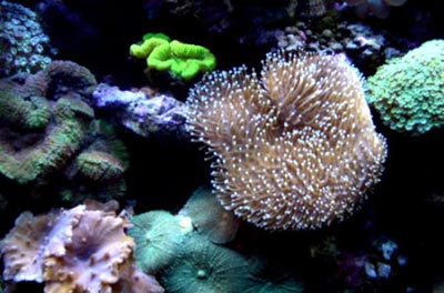 A questo punto ti sei scoraggiato? Assolutamente no, dopo aver sentito varie opinioni e provato diversi metodi su consiglio di altri conoscenti ho acquistato un acquario di 300 lt, con filtro percolatore. E le cose sono migliorate? Assolutamente no, tra errori vari, alcuni miei altri suggeriti, successi ed insuccessi ho pagato completamente il mio tributo di noviziato in questo settore. Quando c’è stato un vero cambiamento? Ti dirò, la svolta è stata dettata da alcune letture su libri e riviste specializzate che nel frattempo avevo intrapreso e dalla letteratura in internet per cui ho acquisito la convinzione di passare al metodo Berlinese puro (luce, rocce vive di buona qualità, e schiumatolo con aggiunta di Calcio ed oligoelementi). Quindi mi decido ad acquistare un nuovo acquario di 600 litri ( che è poi quello attuale) inserisco le rocce vive circa 100 kg, un fondo di sabbia, le luci hqi (3x 150 watt) e lo schiumatoio della Red Sea che non sono mai riuscito a far funzionare correttamente. Da lì a poco è maturata la decisone di cambiare lo skimmer e sono passato al Turboflotor 1000 dell’Aquamedic, senz’altro molto più efficace ma sempre, almeno per me, leggermente difficile da regolare. Dopo poco ho inserito anche il rettore di Calcio e di Kalkwasser e i miei primi coralli duri a SPS. Finalmente con questo sistema sono riuscito ad ottenere dei buoni risultati, i coralli non deperivano più e l’acquario tutto sommato cominciava ad avere un bell’aspetto.