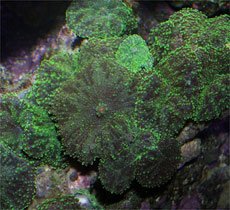 2 colonie di Actinodiscus sp. 1marrone e 1 verde poste in alto ma lateralmente